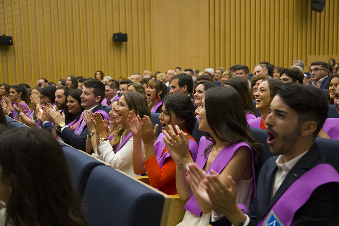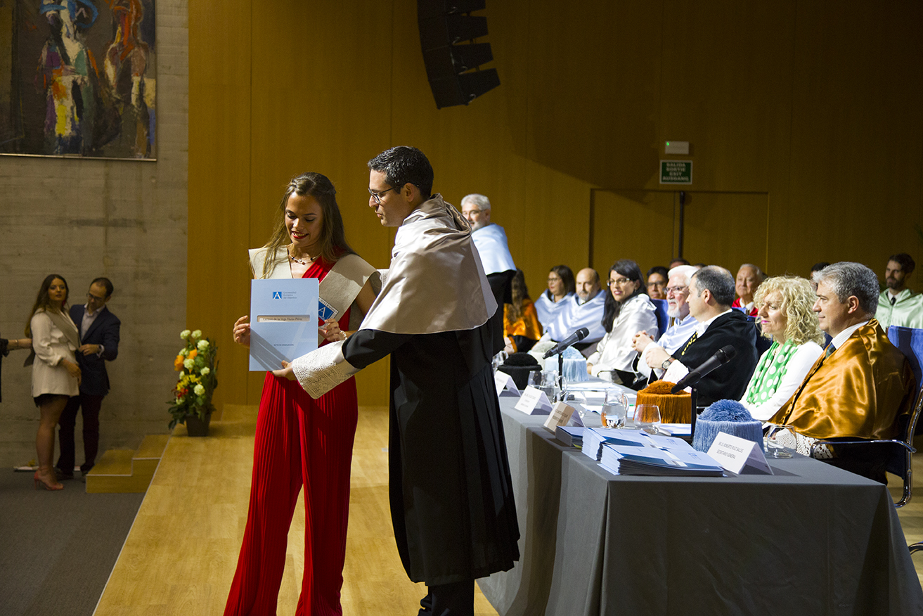 Lors de cette cérémonie, la doyenne de la Faculté des Sciences de la Santé, Sandra Sumalla, a mis l’accent sur le fait qu’aussi bien la licence en Psychologie que celle en Nutrition Humaine et Diététique ont en commun la formation de professionnels « avec une vocation claire d’aider les personnes et les orienter pour parvenir à des changements dans leur vie ».