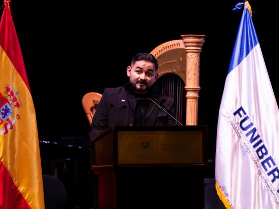 Raúl Castillo Rosales, ministre de la Culture, et Alejandro Herrera, directeur de FUNIBER El Salvador, qui a remercié le soutien de toutes les institutions qui ont rendu cet événement possible.