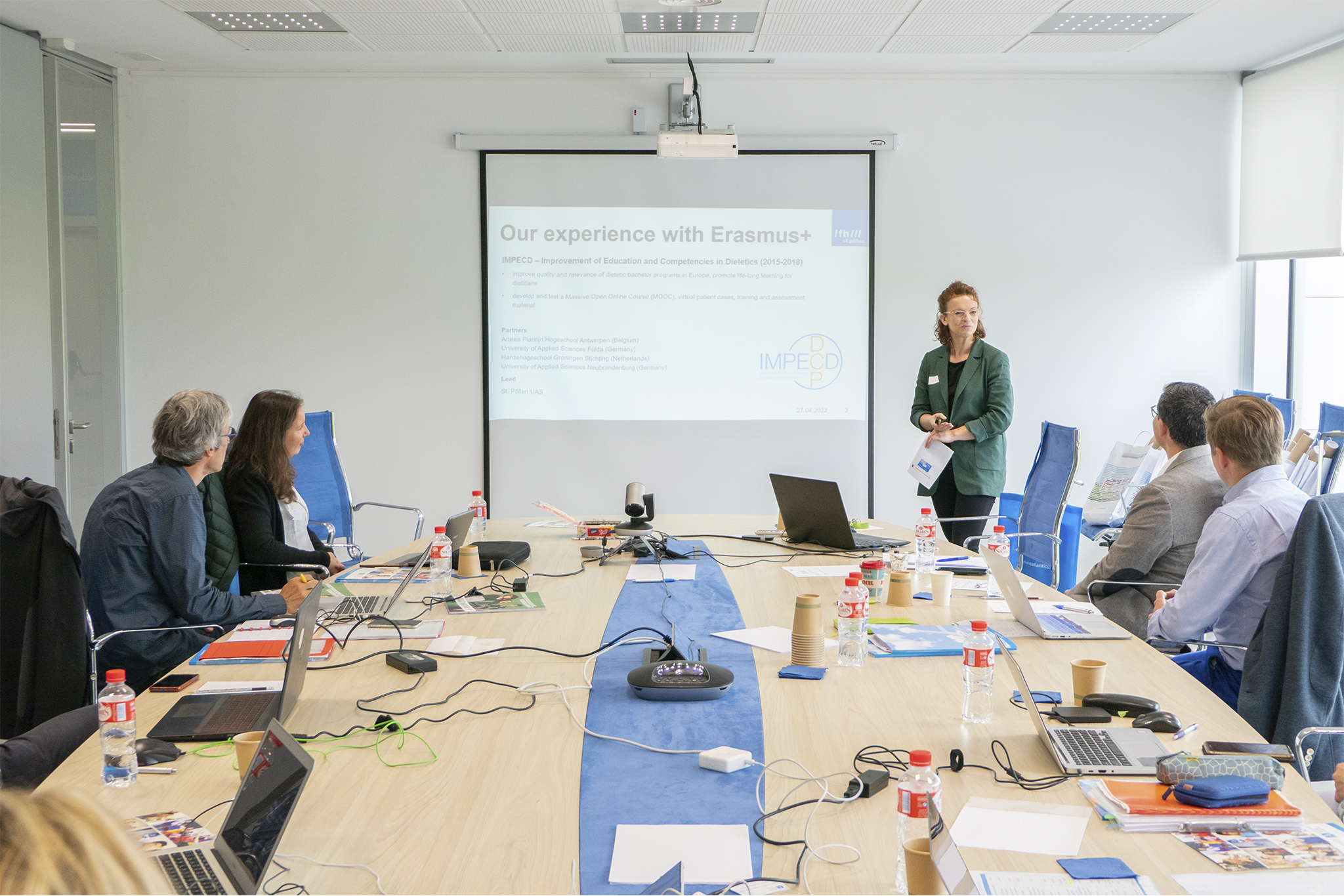 A cette réunion étaient présents : Iñaki Elío, Thomas Prola et Kilian Tutusaus (UNEATLANTICO) ; Antonio Ferreras (Université de Valladolid) ; Cecilia Morais (Université de Porto) ; Magdalena Lelonek (Université Jan Kochanowski de Pologne) ; Alexandra Kolm (St. Pölten University) ; Joni De Grim (AP Hogeschool Antwerpen) ; Dominiek Timmermans et Axelle Beuselinck (Artesis Plantijn University College of Antwerp). Dans ce sens, les collaborateurs ont pu découvrir le campus universitaire, les installations et les laboratoires dont dispose UNEATLANTICO pour une formation théorique et pratique optimale de tous les étudiants.
