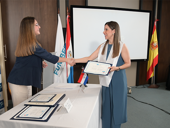 La cérémonie a été menée par le gestionnaire des bourses, Andrea Ayala, qui a donné lieu à la remise des diplômes délivrés par les universités participantes. Ce moment a également été confié à Raquel González Vargas, directrice exécutive de FUNIBER Paraguay et coordinatrice du bureau de représentation au Paraguay d’UNEATLANTICO, ainsi qu’à la secrétaire académique du siège, Aidé Macedo.